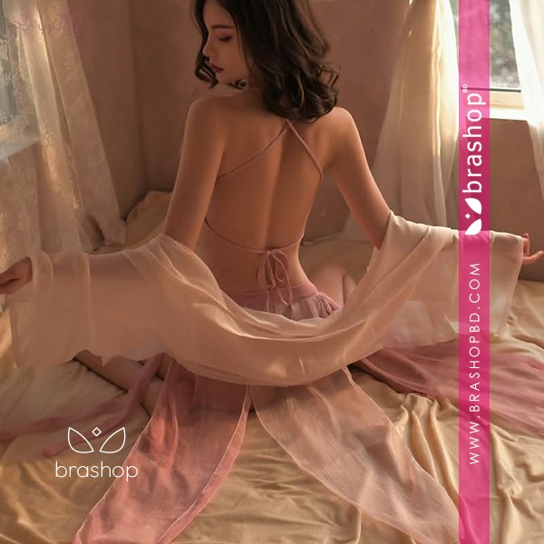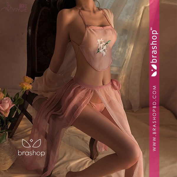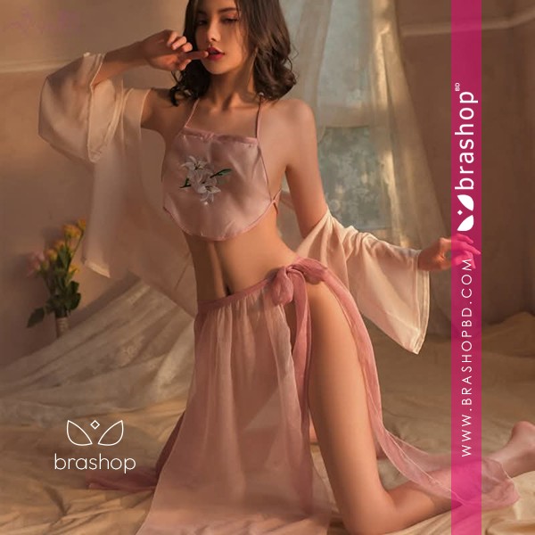 Girl See Through Sleepwear Blossoms Long Robes Nightgown Women Sexy Lingerie Chinese Traditional Bathrobe Mesh Bandage Suit