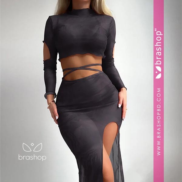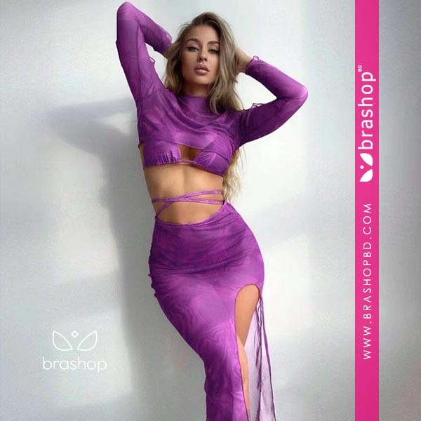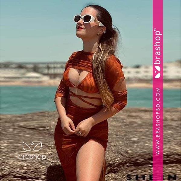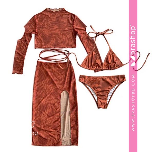 Lace European and American Long-Sleeved Blouse Sexy Split Bikini Four-Piece Suit