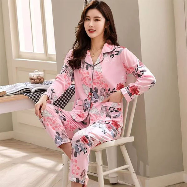 Premium Women’s Pink Floral Pajama Set – Soft Cotton Button Down Nightwear for Ladies