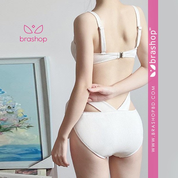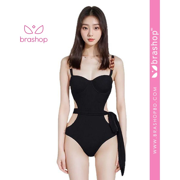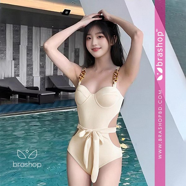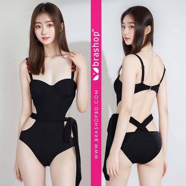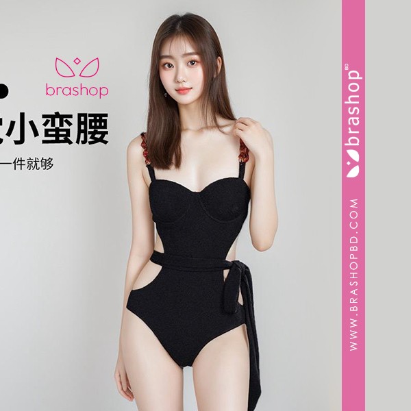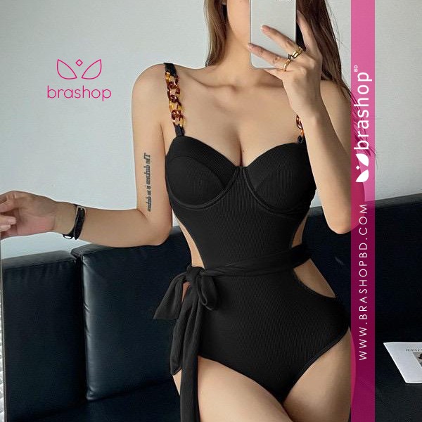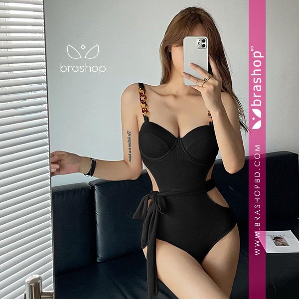 Summer Beach Ribbed Knit Cut Out Waist Belted One Piece Swimsuit